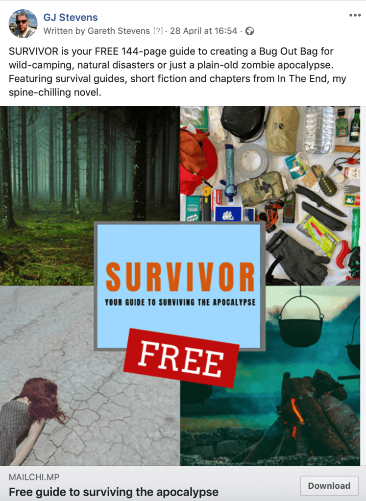 On Wednesday I treated my mailing list to a snippet from the world of IN THE END. It’s a piece I initially wrote on the train to the London Book Fair back in March and will not appear in any of the novels. It’s aimed at giving an insight into the experiences of people I haven’t focused in the main story. Although I included a link to the store for IN THE END, I otherwise kept any advertising or any other hint of trying to sell something, away from the post. If you want to check it out then sign up to the mailing list and I’ll be sending it out again in a week to new subscribers.