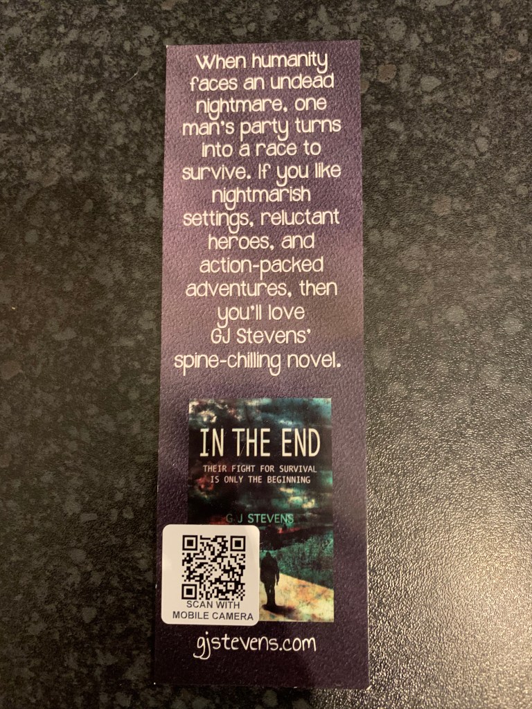 After seeing this in action on a leaflet brought home by my son from school, I knew straight away this was my solution. So I have now ordered stickers with various website addresses on to add to my business cards and other marketing materials. One with the IN THE END booklinker link and one with my website address!