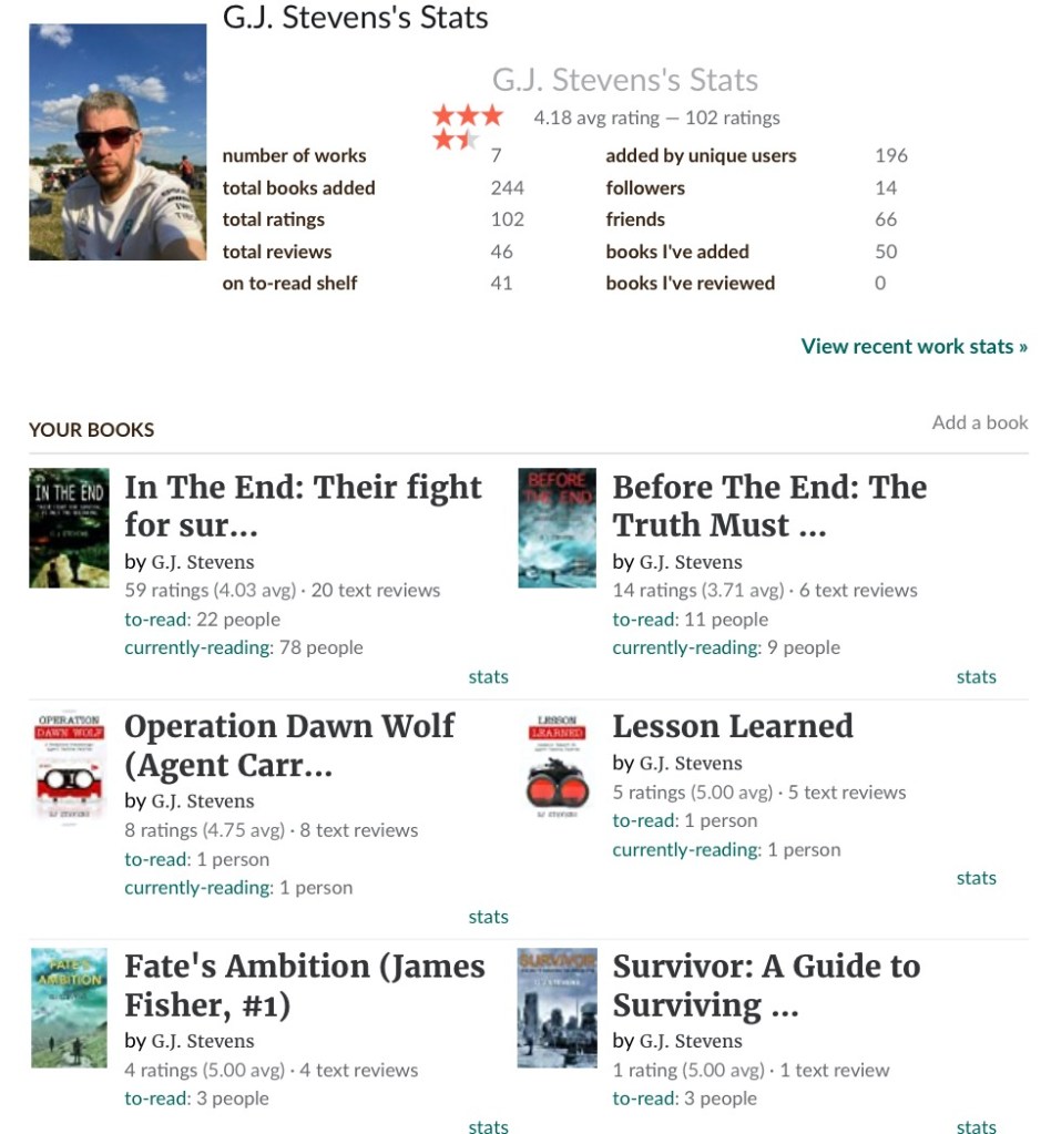 Side effects of the advertising campaigns, and therefore the increased sales, have been new reviews. I’ve now passed 100 reviews on Goodreads and it still makes me laugh when you get negative comments about, let’s say character development, then the review just before or after is completely the opposite on the same point. It goes to show how subjective these things are and I try to let the comments wash over me.