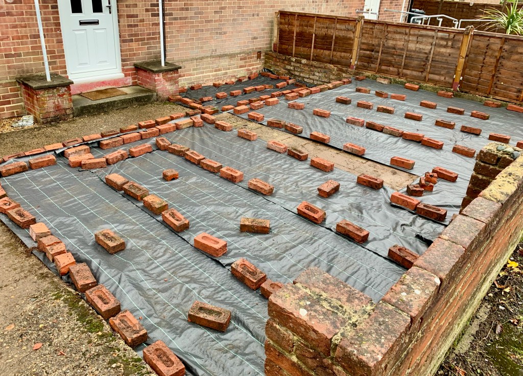 Phase one of my landscaping project has been completed on our front garden. All the weeds have been cleared and out and the ground covered temporarily in matting to stop them growing back. In a weeks time I take delivery of a pallet of sleepers and I’ll start forming the boundary to contain tonnes of pea shingle and hopefully we’ll end up with a low maintenance garden. Here’s a couple of photos of where I’m at for those of you who are interested.