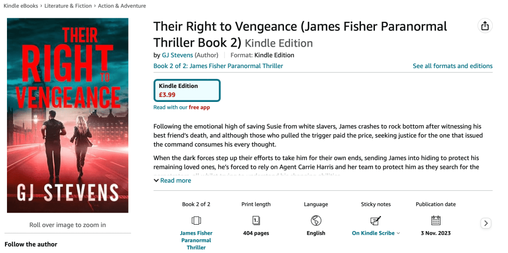 The paperback for THEIR RIGHT TO VENGEANCE is now set up for release alongside the Kindle book on 3rd November, despite a bit of a hiccup. I ordered a proof, and it looked great, but I realised the designer hadn’t included the blurb on the back of the jacket. I went back to them and they sorted it within a day. I’m very surprised I missed that when I took delivery of the files.