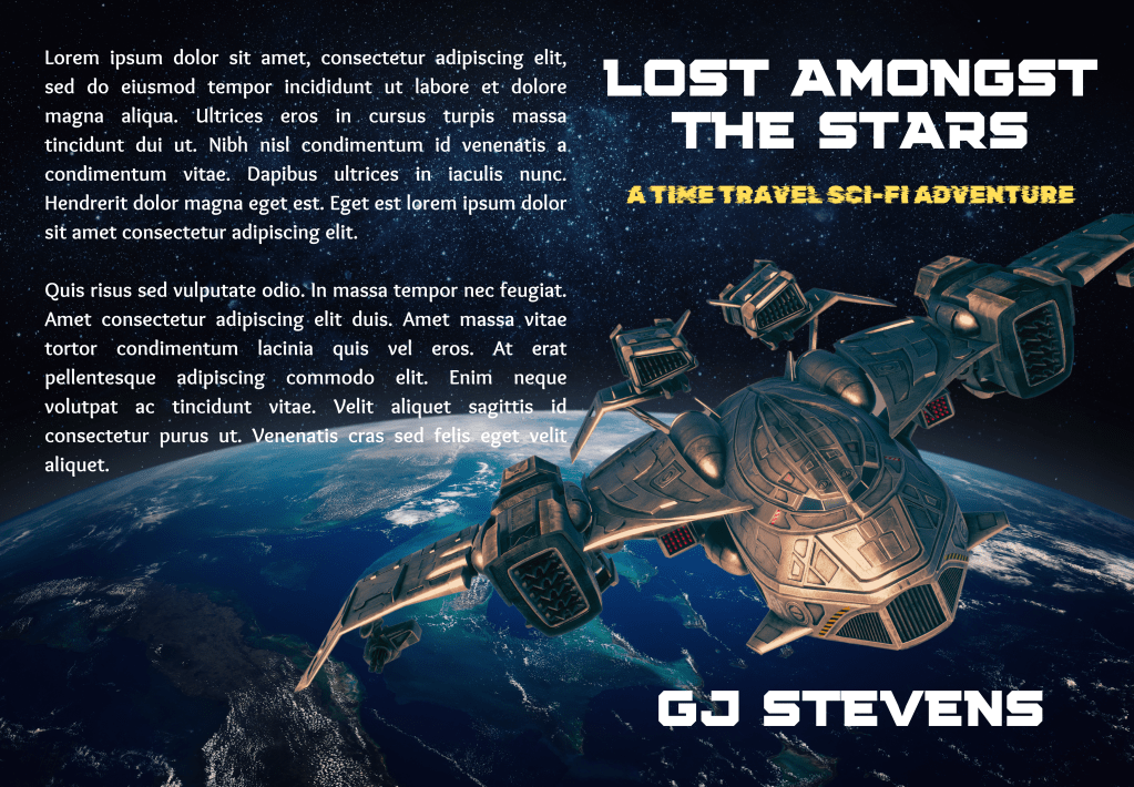 I grabbed both the spaceship and the earth picture from Shutterstock then used Canva to put it all together. The only thing I would want to change is to make the ship more battered as it is in the book, but that’s beyond my capabilities.